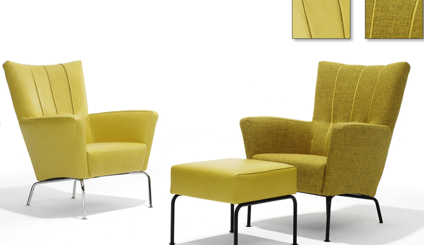 fauteuil ”Lewis” Ojee design leverbaar in leer of stof of combinatie leer/stof.